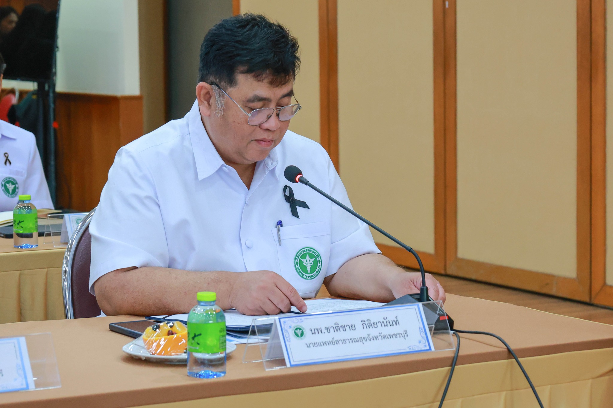 นำเสนอสถานการณ์สุขภาพจังหวัดเพรบุรีและผลการดำเนินงาน "One Team One Phetch (OTOP) จังหวัดเพชรบุรี โดยนายแพทย์ปางชนม์ เตี้ยแจ้ รองนายแพทย์สาธารณสุขจังหวัดเพชรบุรี และนายแพทย์จิรายุ เล็กพิทยา รองผู้อำนวยการฝ่ายการแพทย์ โรงพยาบาลพระจอมเกล้า จังหวัดเพชรบุรี ณ ห้องประชุมเพชรพระจอมเกล้า ชั้น 9 อาคารพิฆเนศวรสุรสังกาศ โรงพยาบาลพระจอมเกล้า จังหวัดเพชรบุรี