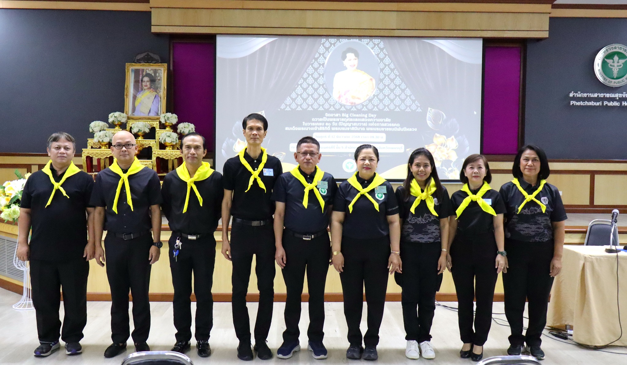 วันที่ 12 ธันวาคม 2568 เวลา 09.00 น. นพ.ชาติชาย กิติยานันท์ นายแพทย์สาธารณสุขจังหวัดเพชรบุรี มอบหมายให้ นพ.ปางชนม์ เตี้ยแจ้ ผู้ช่วยนายแพทย์สาธารณสุขจังหวัดเพชรบุรี เป็นประธานในพิธีเปิดกิจกรรม “จิตอาสา Big Cleaning Day ถวายเป็นพระราชกุศลและแสดงความอาลัย เนื่องในวาระครบ ๕๐ วัน (ปัญญาสมวาร) แห่งการสวรรคต สมเด็จพระนางเจ้าสิริกิติ์ พระบรมราชินีนาถ พระบรมราชชนนีพันปีหลวง” กล่าวรายงานโดย นายณรงค์ฤทธ์ คงสมาน รองนายแพทย์สาธารณสุขจังหวัดเพชรบุรี พร้อมด้วยคณะผู้บริหาร และบุคลากรทุกกลุ่มงานของสำนักงานสาธารณสุขจังหวัดเพชรบุรี เข้าร่วมกิจกรรมอย่างพร้อมเพรียง เพื่อถวายเป็นพระราชกุศลและแสดงความอาลัย เนื่องในวาระครบ ๕๐ วัน (ปัญญาสมวาร) แห่งการสวรรคต สมเด็จพระนางเจ้าสิริกิติ์ พระบรมราชินีนาถ พระบรมราชชนนีพันปีหลวง น้อมสำนึกในพระมหากรุณาธิคุณอันหาที่สุดมิได้ ที่ทรงอุทิศพระองค์เพื่อพัฒนายกระดับคุณภาพชีวิตของประชาชน และทรงอนุรักษ์ศิลปวัฒนธรรมของชาติให้คงอยู่สืบไป กิจกรรม “จิตอาสา Big Cleaning Day ล้างลดฝุ่น PM 2.5 และกิจกรรม ‘3 เก็บ ป้องกัน 3 โรค’” มุ่งเน้นการทำความสะอาด ลดมลพิษฝุ่น PM 2.5 การปรับปรุงภูมิทัศน์ และดูแลสิ่งแวดล้อมของสถานที่ทำงานให้เป็นระเบียบเรียบร้อย ตลอดจนเป็นแบบอย่างที่ดีให้หน่วยงานอื่นนำไปปฏิบัติ พร้อมเสริมสร้างจิตสำนึกด้านสาธารณสุขและสิ่งแวดล้อมในชุมชนอย่างยั่งยืน ณ สำนักงานสาธารณสุขจังหวัดเพชรบุรี