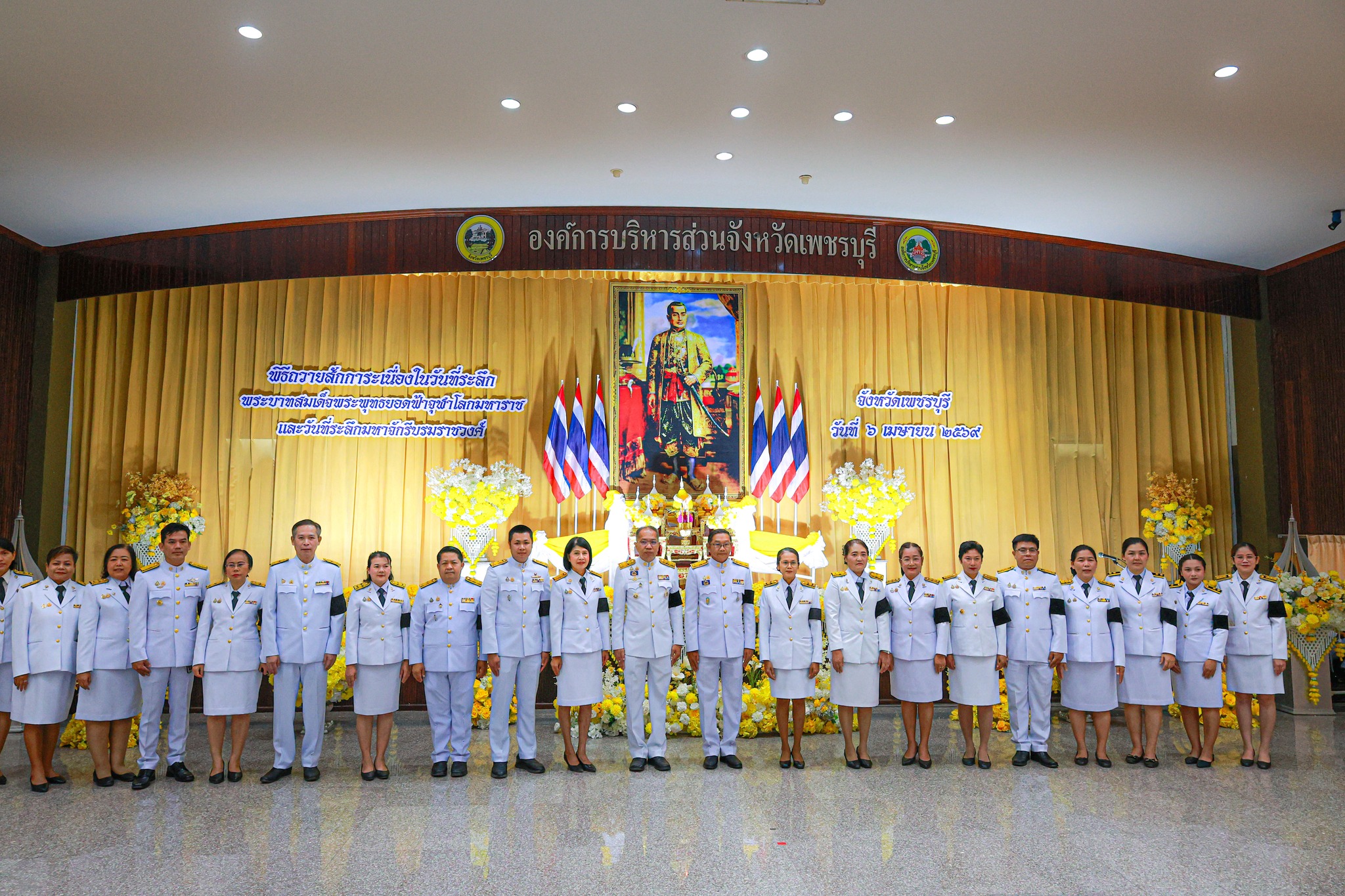 วันจันทร์ที่ 6 เมษายน เวลา 06.45 น. นพ.นราพงศ์ ธีรอัครวิภาส นายแพทย์สาธารณสุขจังหวัดเพชรบุรี มอบหมายให้ นพ.ปางชนม์ เตี้ยแจ้ รองนายแพทย์สาธารณสุขจังหวัดเพชรบุรี นายเศกสันต์ ชานมณีรัตน์ รองนายแพทย์สาธารณสุขจังหวัดเพชรบุรี และดร.ธนวัฒน์ รุ่งศิริวัฒนกิจ รองนายแพทย์สาธารณสุขจังหวัดเพชรบุรี นำทีมบุคลากรกลุ่มงานควบคุมโรคไม่ติดต่อฯ สำนักสาธารณสุขจังหวัดเพชรบุรี เข้าร่วม พิธีถวายราชสักการะเนื่องใน “วันที่ระลึกพระบาทสมเด็จพระพุทธยอดฟ้าจุฬาโลกมหาราชและวันที่ระลึกมหาจักรีบรมราชวงศ์” โดยมีร้อยตำรวจโท ภพชนก ชลานุเคราะห์ ผู้ว่าราชการจังหวัดเพชรบุรี เป็นประธานในพิธี และร่วมพิธีทำบุญตักบาตรถวายพระราชกุศลพระสงฆ์และสามเณร ณ บริเวณลานรัฐพิธี หน้าศาลากลางจังหวัดเพชรบุรี พิธีวางพานพุ่มดอกไม้และถวายราชสดุดี เวลา 08.00 น. ณ ห้องประชุมพริบพรี ชั้น 2 ศาลากลางจังหวัดเพชรบุรี
