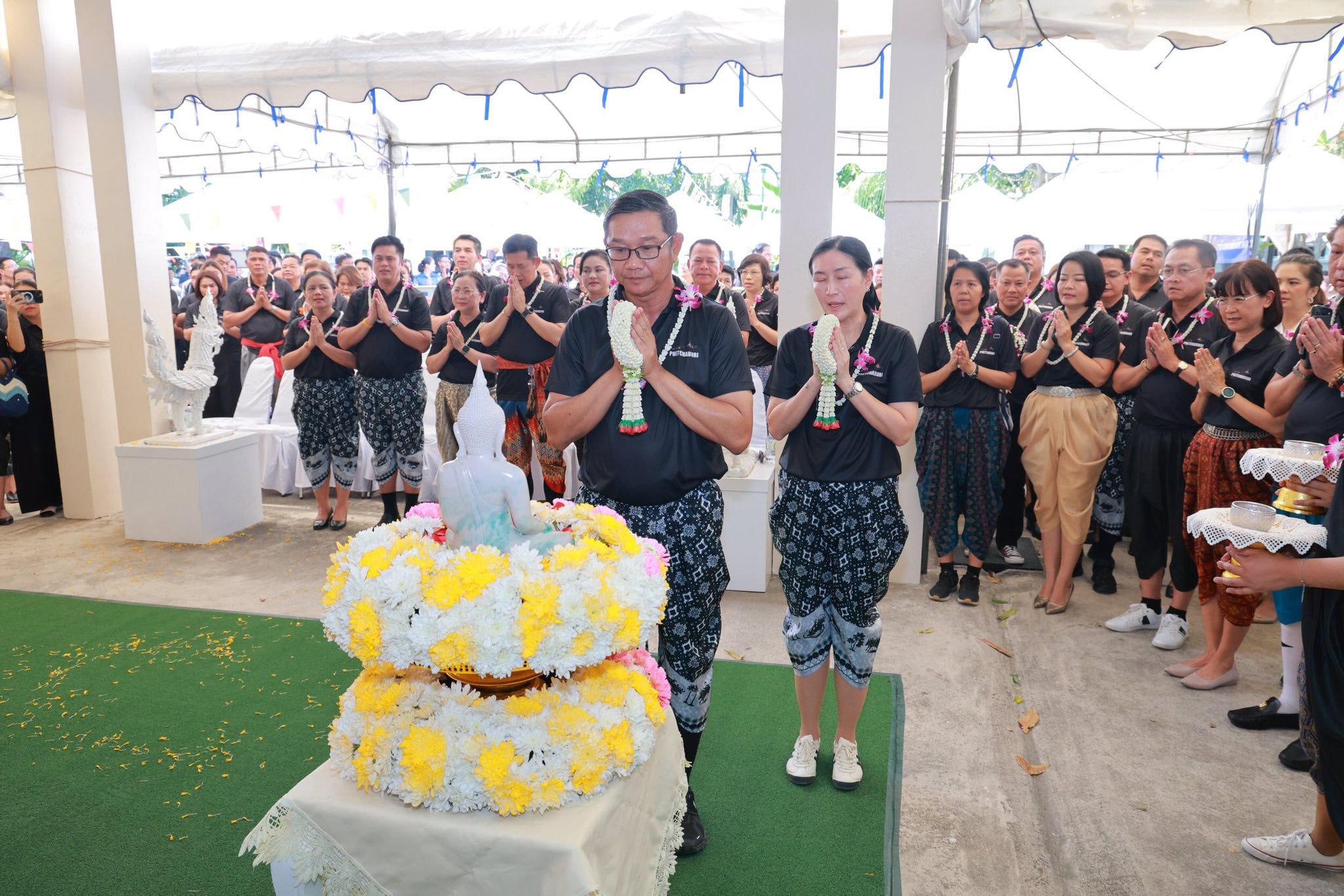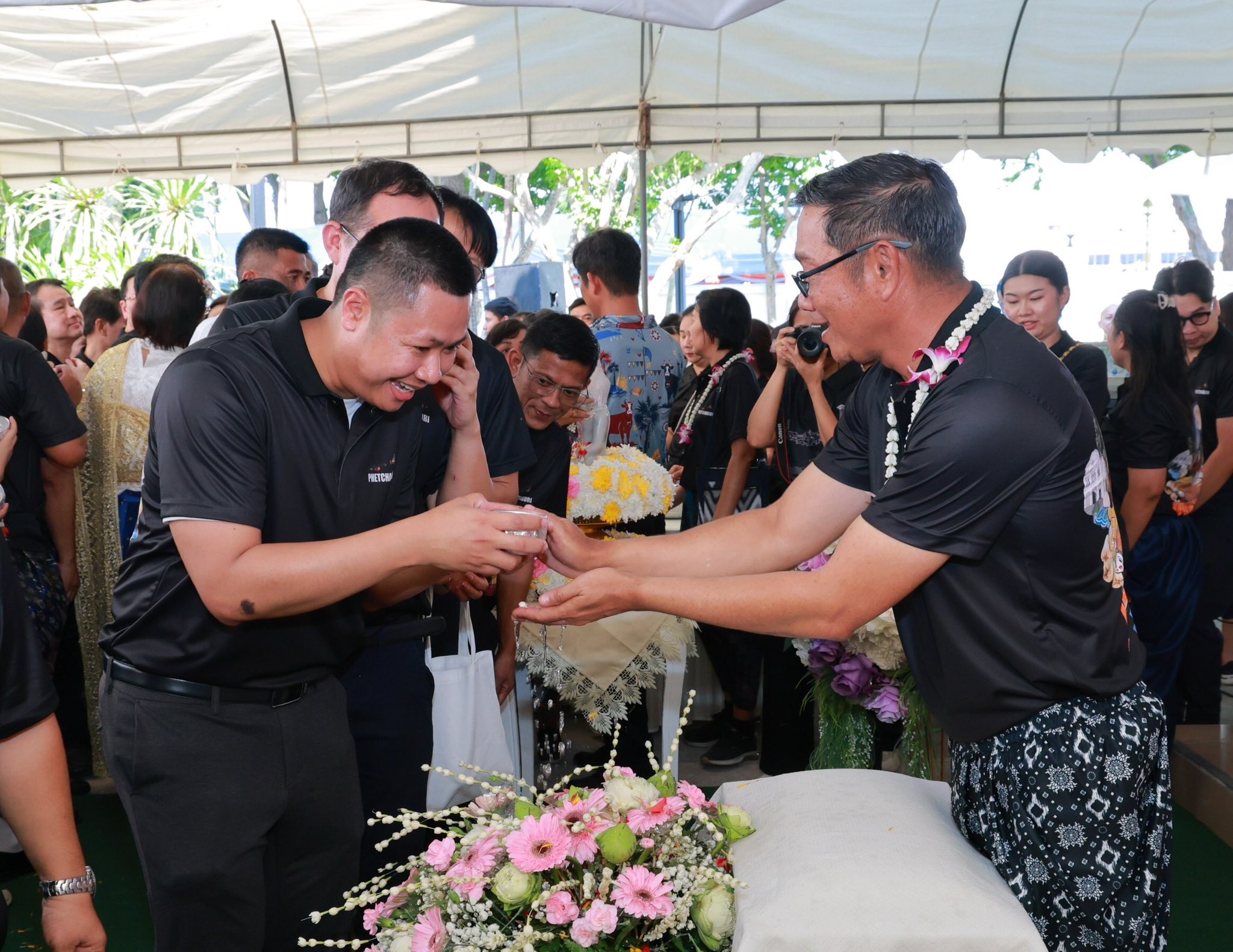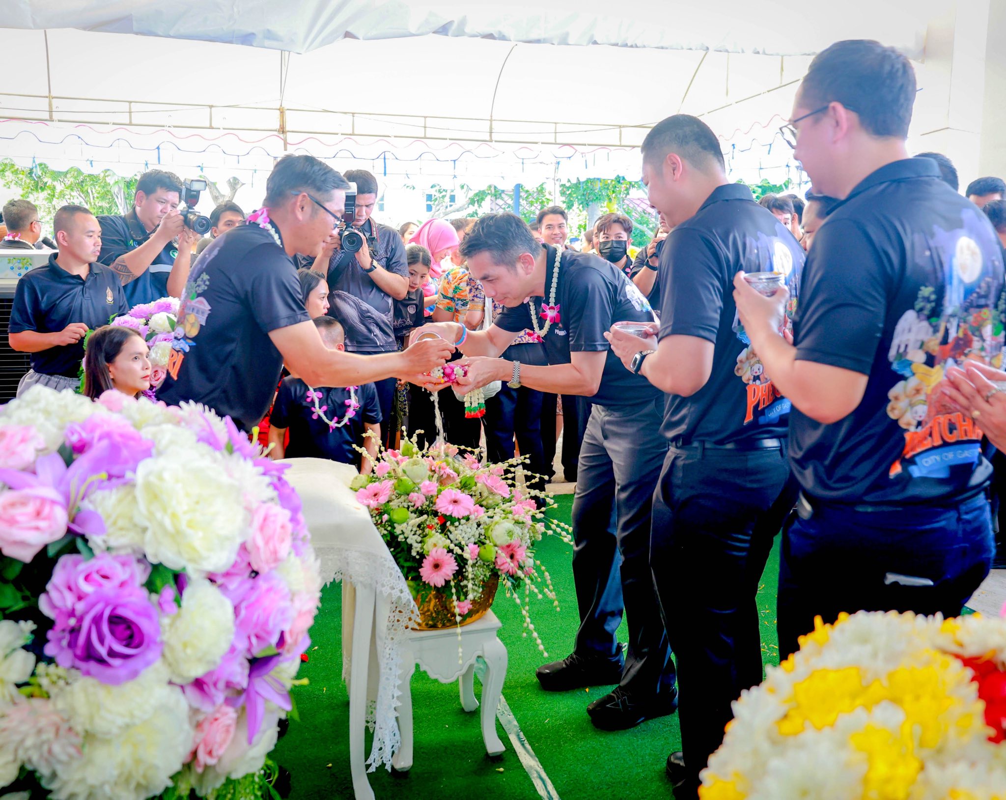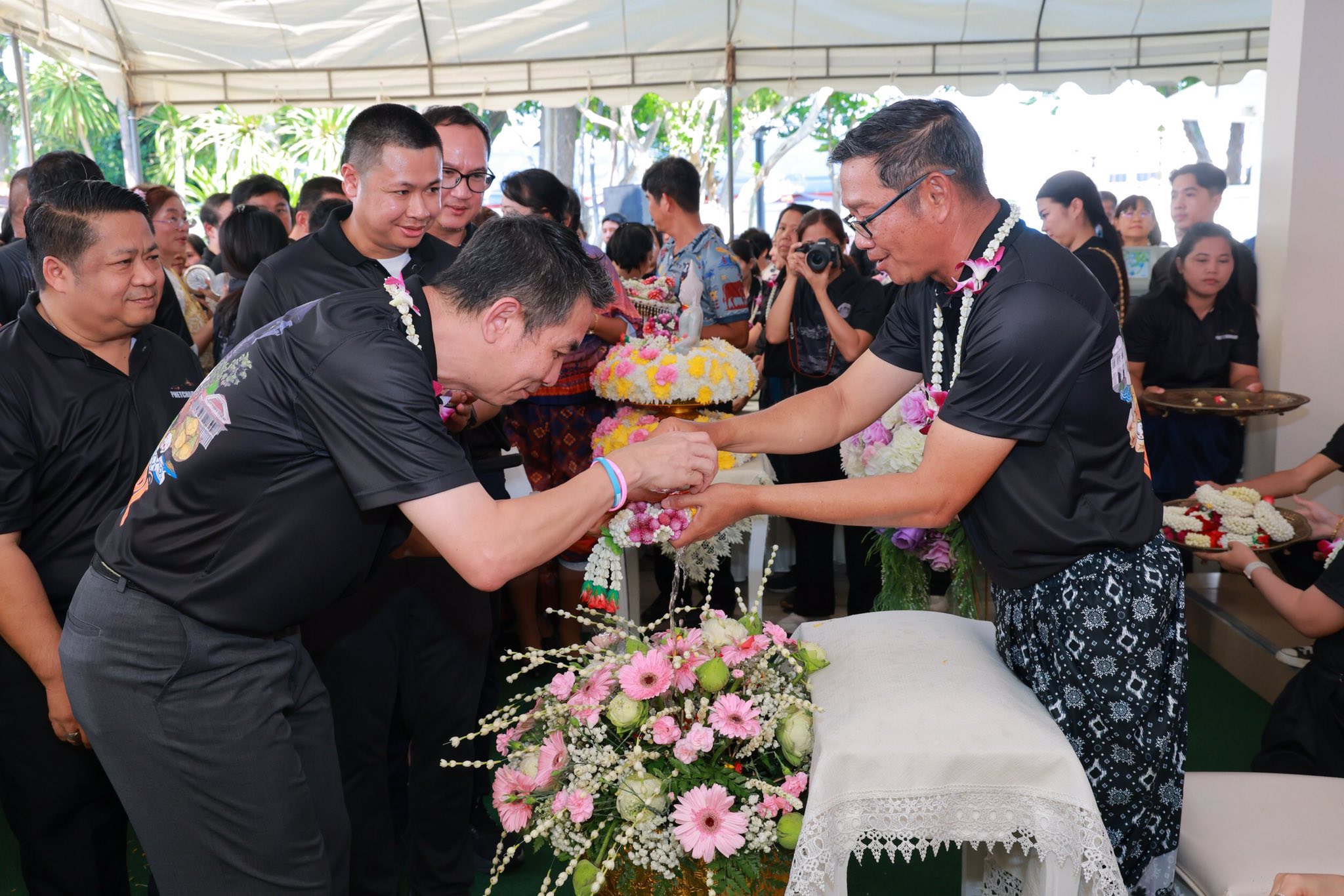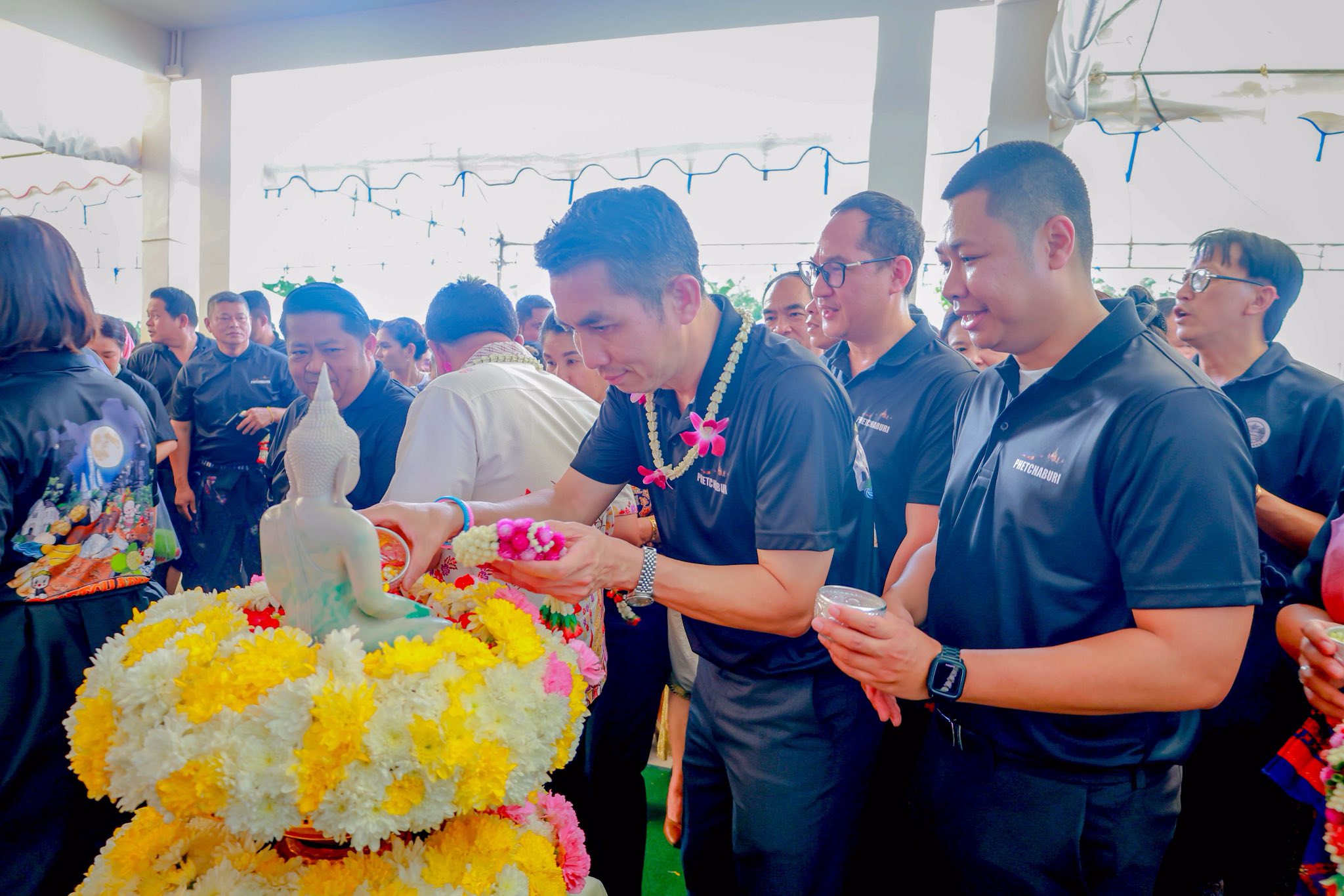 วันพฤหัสบดีที่ 9 เมษายน พุทธศักราช 2569 เวลา 14.30 น. นายแพทย์นราพงศ์ ธีรอัครวิภาส นายแพทย์สาธารณสุขจังหวัดเพชรบุรี นำคณะผู้บริหารและบุคลากรในสังกัด เข้าร่วมพิธีรดน้ำขอพร ร้อยตำรวจโทภพชนก ชลานุเคราะห์ ผู้ว่าราชการจังหวัดเพชรบุรี เนื่องในประเพณีสงกรานต์ ณ จวนผู้ว่าราชการจังหวัดเพชรบุรี เพื่อความเป็นสิริมงคลเนื่องในโอกาสวันขึ้นปีใหม่ไทย คณะผู้เข้าร่วมได้ร่วมกันรดน้ำขอพรด้วยความเคารพและความปรารถนาดี สะท้อนถึงการสืบสานประเพณีอันงดงามของไทยให้คงอยู่สืบไป ท่ามกลางบรรยากาศที่อบอุ่นและเปี่ยมด้วยความผูกพัน