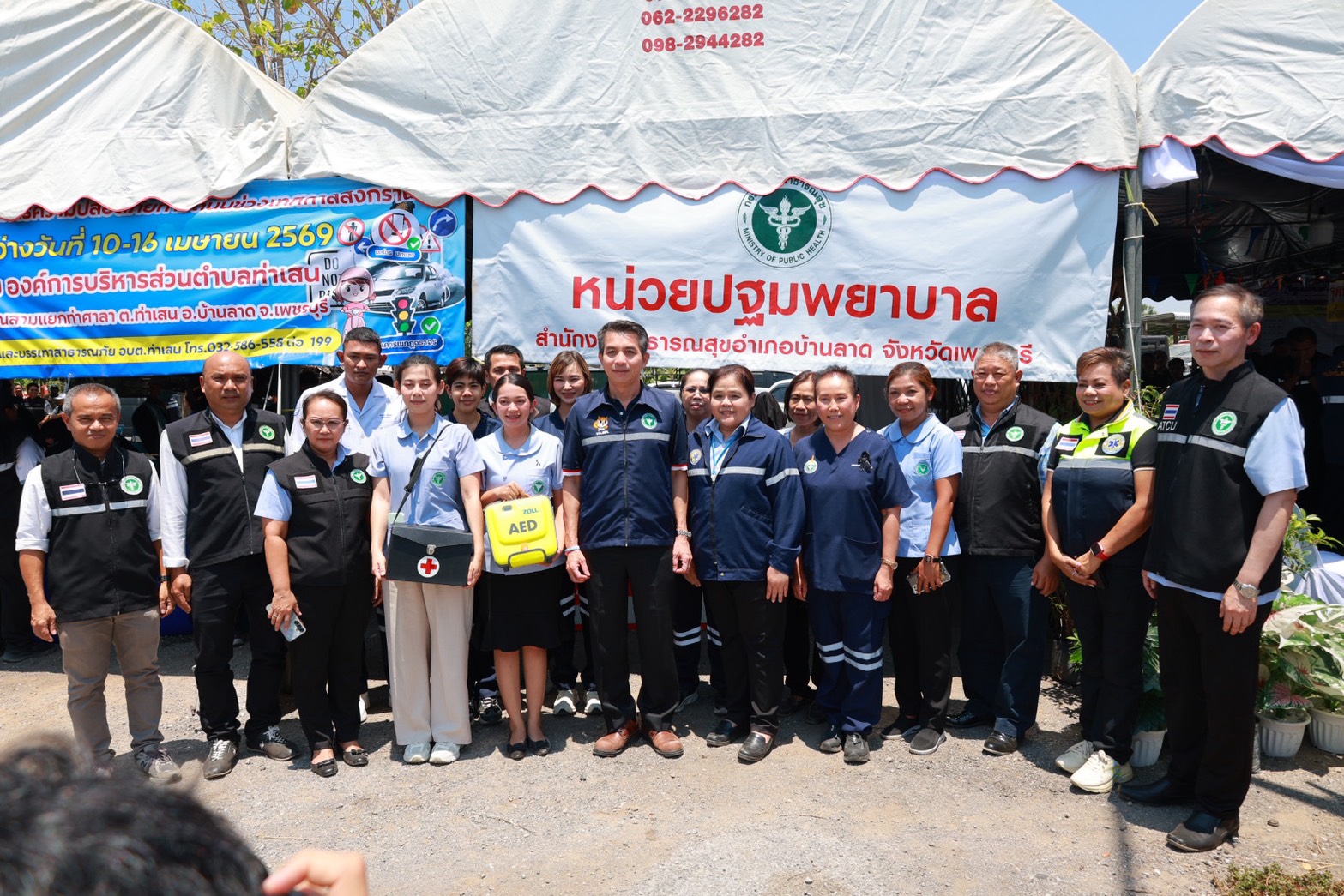 วันที่ 10 เมษายน 2569 เวลา 10.00 น.นายแพทย์นราพงศ์ ธีรอัครวิภาส นายแพทย์สาธารณสุขจังหวัดเพชรบุรี พร้อมด้วยคณะผู้บริหาร ร่วมพิธีเปิดศูนย์ปฏิบัติการป้องกันและลดอุบัติเหตุทางถนนช่วงเทศกาลสงกรานต์ปี 2569 โดยมีร้อยตำรวจโท ภพชนก ชลานุเคราะห์ ผู้ว่าราชการจังหวัดเพชรบุรี เป็นประธาน ณ บริเวณจุดตรวจสามแยกท่าศาลาหมู่ 8 บ้านหัวเขส ตำบลท่าเสนอำเภอบ้านลาด และอำเภอเขาย้อย จังหวัดเพชรบุรี