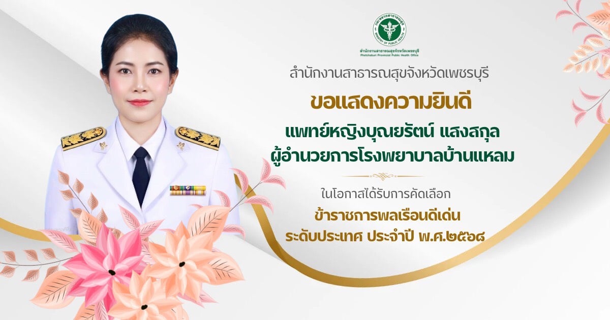 สำนักงานสาธารณสุขจังหวัดเพชรบุรี ขอแสดงความยินดี วันที่ ๐๖ มี.ค. ๒๕๖๙ เวลา ๑๒:๑๖ น. โดย นายพากร ชุณหภัทรกุล 84