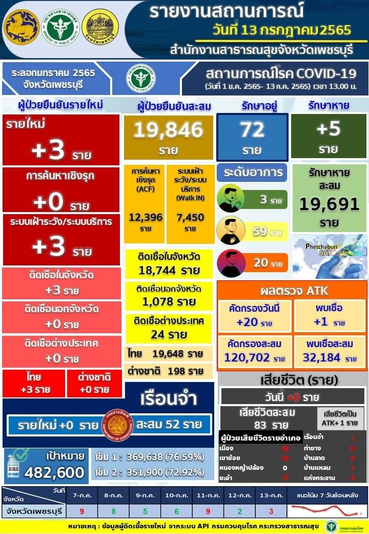 รายงานสถานการณ์ โรคติดเชื้อไวรัสโคโรนา 2019 จ.เพชรบุรี