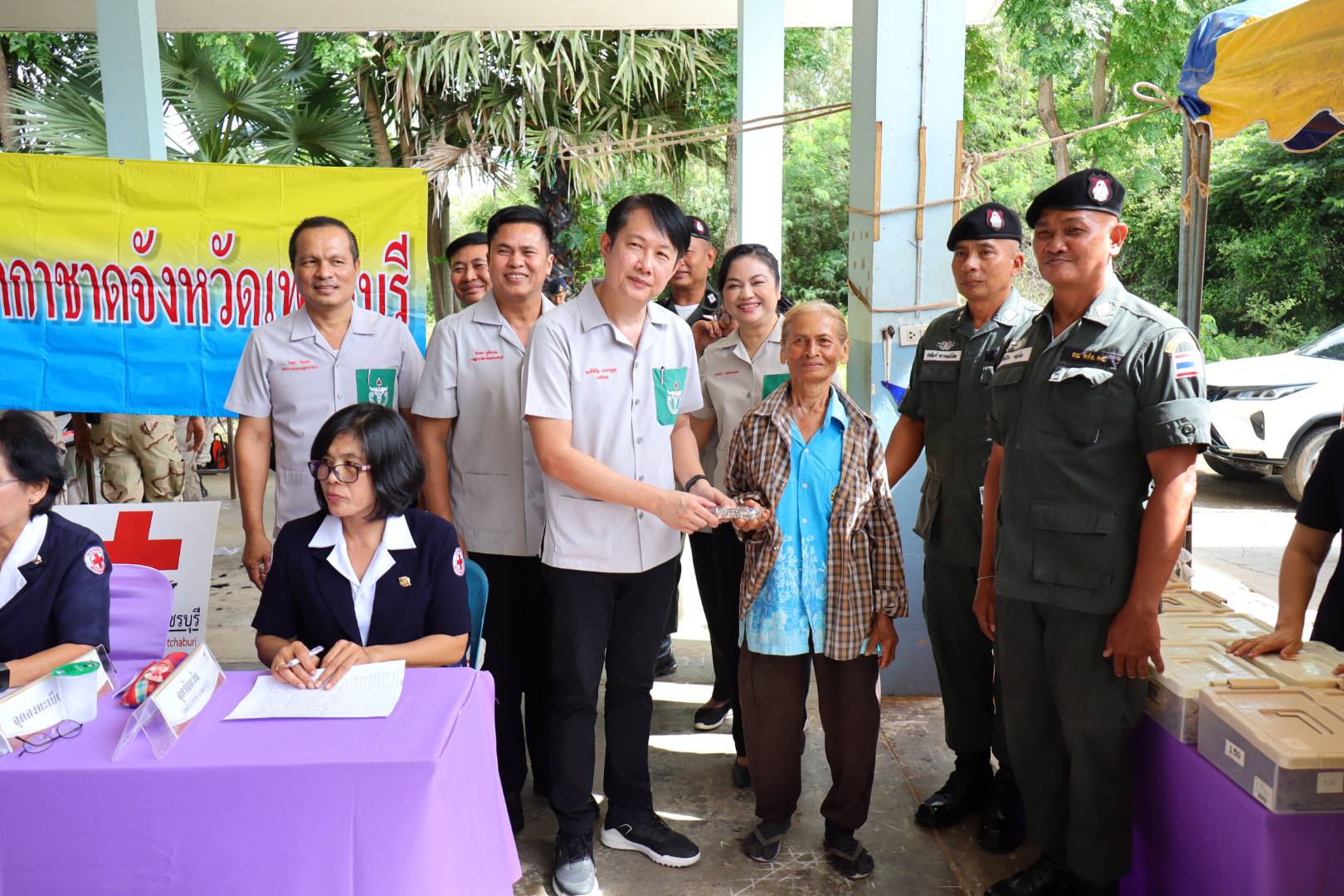 วันที่ 11 กันยายน 2568 เวลา 09:00 น. นายแพทย์ชาติชาย กิติยานันท์ นายแพทย์สาธารณสุขจังหวัดเพชรบุรี มอบหมายให้ นพ.จตุภูมิ นีละศรี ผอ.โรงพยาบาลท่ายาง กล่าวรายงาน กิจกรรมหน่วยแพทย์เคลื่อนที่ พอ.สว. ออกให้บริการประชาชน พร้อมมอบยารักษาโรคพระราชทาน ผ้าห่มกันหนาว ถุงยังชีพ และออกเยี่ยมบ้านผู้ป่วย โดยมี นายชัยพล ภูต้องลม รองผู้ว่าราชการจังหวัดเพชรบุรี เป็นประธาน ร่วมด้วย นายพงศ์พิสิฐ นานานุกูล นายแพทย์ประกาศิต ชมชื่น รองนายแพทย์ สสจ.พบ. สาธารณสุขอำเภอท่ายาง เหล่ากาชาดจังหวัดเพชรบุรี นายอำเภอ โรงพยาบาลท่ายาง โรงพยาบาลพระจอมเกล้าฯ พัฒนาสังคมและความมั่นคงของมนุษย์ ปศุสัตว์จังหวัดเพชรบุรี องค์การบริหารส่วนตำบล คลังจังหวัดและผู้นำชุมชน ณ อบต.กลัดหลวง บ้านสาระเห็ด ตำบลกลัดหลวง อำเภอท่ายาง จังหวัดเพชรบุรี